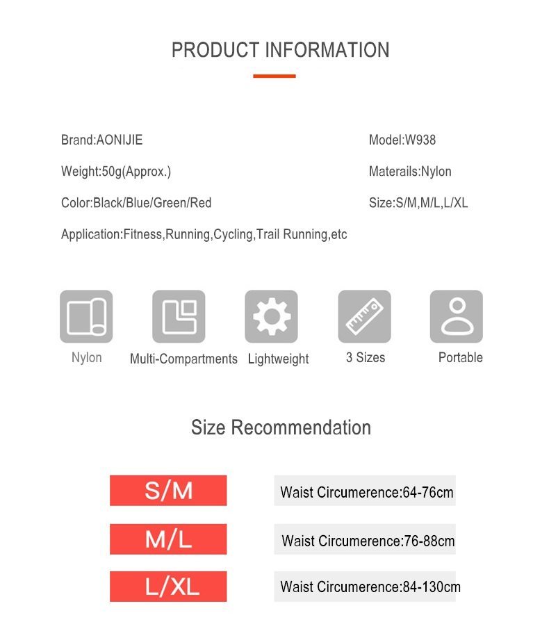 - Chất liệu nylon chống thấm, thiết kế lưới ở mặt sau giúp thoát khí tối ưu: Đai chạy bộ Aonijie w938s có một ngăn đựng cỡ lớn cùng khóa kéo chắc chắn, giúp bạn để điện thoại kích thước lớn lên đến 5.5 inch (IP Promax, XSmax, 7/8 Plus, S8...) và rất nhiều đồ khác như chìa khóa, tiền, tai nghe…